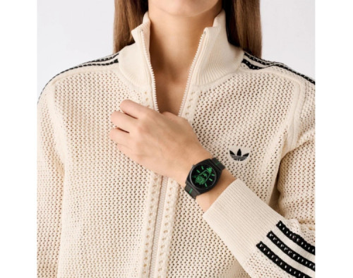 Кварц унисекс Наручные часы Adidas AOST25040, корпус Пластик, диаметр 38 mm, Акрил стекло, Черный циферблат и Черный Смола ремешок.