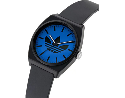 Кварц унисекс Наручные часы Adidas AOST25547, корпус Пластик, диаметр 38 mm, Акрил стекло, Синий циферблат и Черный Смола ремешок.