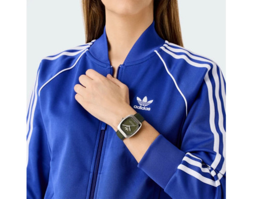 Кварц унисекс Наручные часы Adidas AOSY24526, корпус Нержавеющая сталь, диаметр 37 mm, Минеральная стекло, Зеленый циферблат и Зеленый Кожа ремешок.