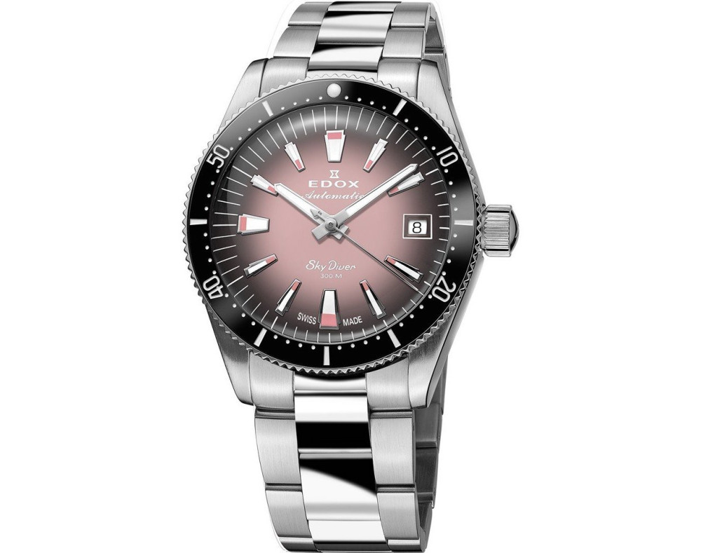 механический унисекс Наручные часы EDOX 80131 3NM NDRO, корпус Нержавеющая сталь, диаметр 38 mm, Минерал с обработкой сапфиром стекло, Роза циферблат и Серебро Нержавеющая сталь ремешок.