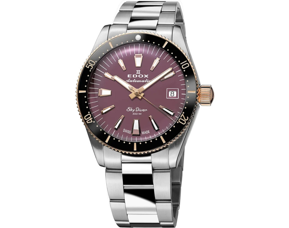 механический унисекс Наручные часы EDOX 80131 357RNRM VIO, корпус Нержавеющая сталь, диаметр 38 mm, Минерал с обработкой сапфиром стекло, Виола циферблат и Серебро Нержавеющая сталь ремешок.