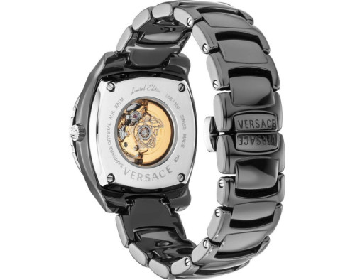 Кварц Женщина Наручные часы Versace 63ACS91D09FSC09, корпус Керамический, диаметр 40 mm, Минерал с обработкой сапфиром стекло, Серебро циферблат и Черный Нержавеющая сталь ремешок.