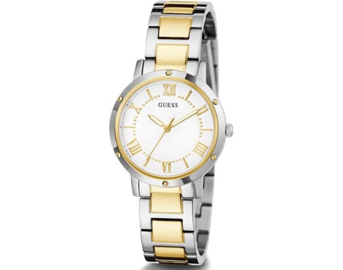 Кварц Женщина Наручные часы Guess GW0404L2, корпус Нержавеющая сталь, диаметр 34 mm, Минеральная стекло, Белый циферблат и Две тонны Нержавеющая сталь ремешок.