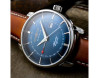 Кварц Мужчина Наручные часы Zeppelin 8442-3, корпус Нержавеющая сталь, диаметр 41 mm, Минеральная K1 стекло, Синий циферблат и Коричневый Кожа ремешок.