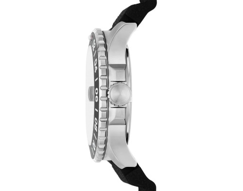 Armbanduhr Fossil Fossil Blue FS6036 für Herren mit Quarzwerk, Uhrengehäuse aus Edelstahl mit einem Durchmesser von 46 mm, Ziffernblatt Schwarz und Uhrenarmband aus Silikon in der Farbe Schwarz.