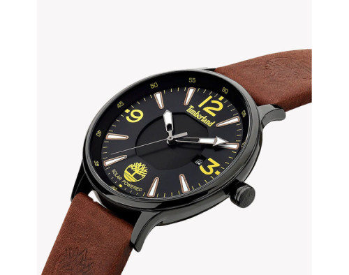 Armbanduhr Timberland Marblehead TDWGA2100902 für Herren mit Quarzwerk, Uhrengehäuse aus Edelstahl mit einem Durchmesser von 43 mm, Ziffernblatt Schwarz und Uhrenarmband aus Leder in der Farbe Braun.