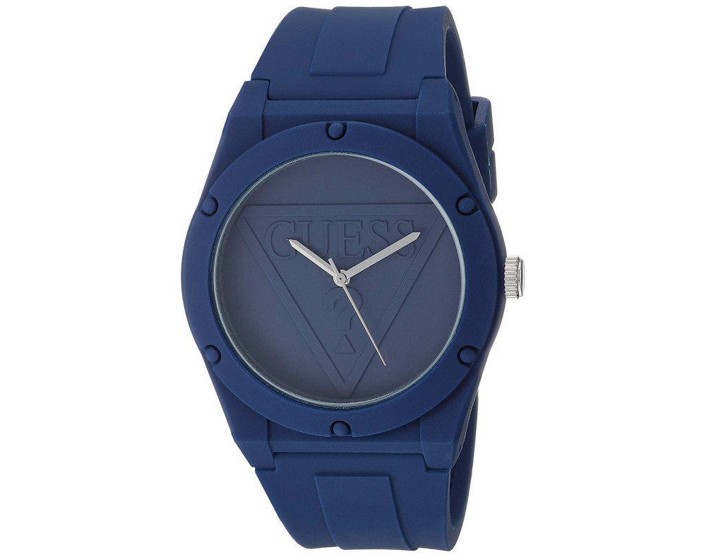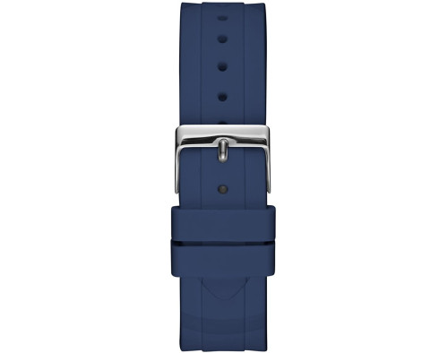 Armbanduhr Guess Retro Pop W0979L4 für Damen mit Quarzwerk, Uhrengehäuse aus Kautschuk mit einem Durchmesser von 42 mm, Ziffernblatt Blau und Uhrenarmband aus Silikon in der Farbe Blau.