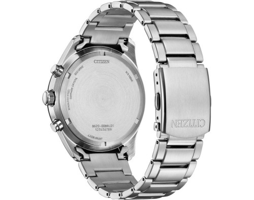 Armbanduhr Citizen Eco-Drive CA4674-58E für Herren mit Quarzwerk, Uhrengehäuse aus Edelstahl mit einem Durchmesser von 43 mm, Ziffernblatt Schwarz und Uhrenarmband aus Edelstahl in der Farbe Silber.