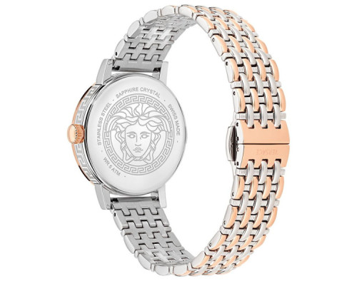 Kvarts Naine Käekell Versace VE0A00425, Roostevaba teras korpusega, läbimõõduga 35 mm, Safiiri töötlusega mineraal klaasist, Roos sihverplaadi ja Kahetooniline Roostevaba teras rihm.
