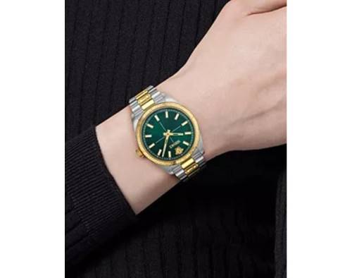 Kvarts Naine Käekell Versace VE0E00425, Roostevaba teras korpusega, läbimõõduga 32 mm, Safiiri töötlusega mineraal klaasist, Roheline sihverplaadi ja Kahetooniline Roostevaba teras rihm.