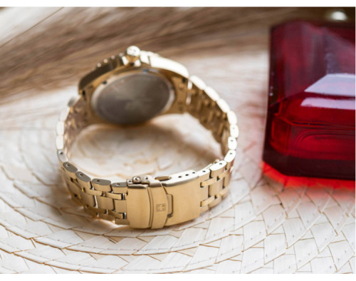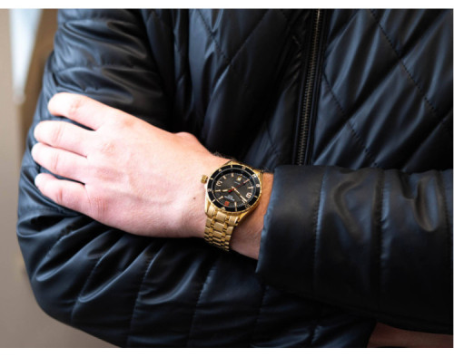 Kvarts Mees Käekell Swiss Alpine Military SAM7034.1117, Roostevaba teras korpusega, läbimõõduga 42 mm, Mineraal klaasist, Must sihverplaadi ja Kuldne Roostevaba teras rihm.