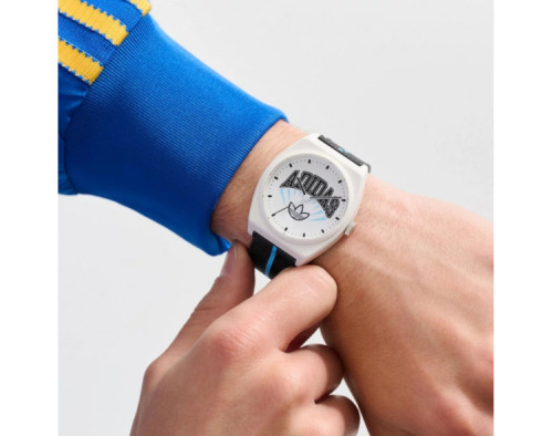 Kvarts Unisex Käekell Adidas AOST25038, Plastikust korpusega, läbimõõduga 38 mm, Akrüül klaasist, Valge sihverplaadi ja Must Vaik rihm.