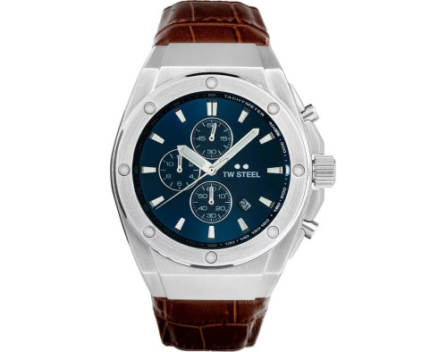 Kvarts Mees Käekell TW Steel TWCE4107, Roostevaba teras korpusega, läbimõõduga 44 mm, Safiiri töötlusega mineraal klaasist, Sinine sihverplaadi ja Pruun Nahk rihm.