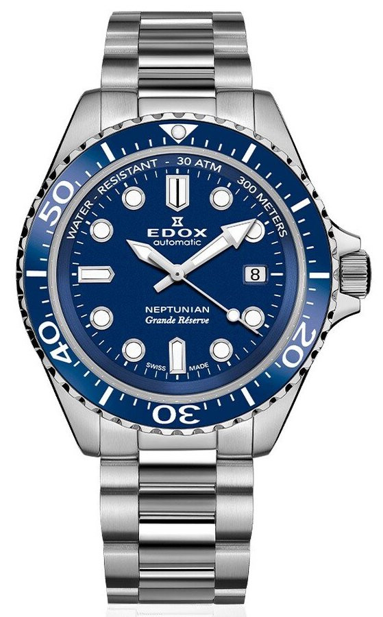 Mehaaniline Mees Käekell EDOX 80801 3BUM BUIN, Roostevaba teras korpusega, läbimõõduga 42 mm, Safiiri töötlusega mineraal klaasist, Sinine sihverplaadi ja Hõbedane Roostevaba teras rihm.