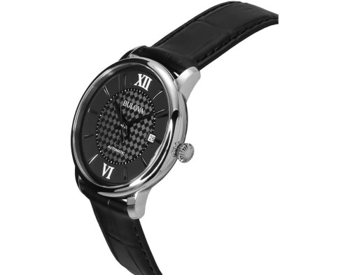 Montre bracelet Bulova Hudson 96B441 pour Homme à Mécanique, avec une boîtier de Acier inoxydable d’un diamètre de 39 mm, avec un cadran Noir et avec un bracelet de Cuir en couleur Noir.