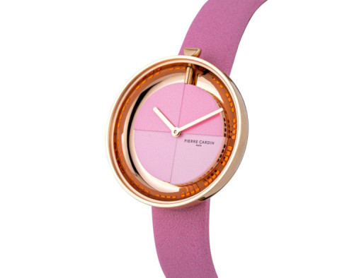 Quartz Womens Wristwatch Pierre Cardin Marais Mirror CMA.0004 with Stainless steel case, with diameter 32 mm, Pink dial and Pink Leather band.