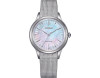 Quartz Womens Wristwatch Citizen EM1150-86D with Stainless steel case, with diameter 32 mm, Mother of pearl dial and Silver Milanese Mesh band.
