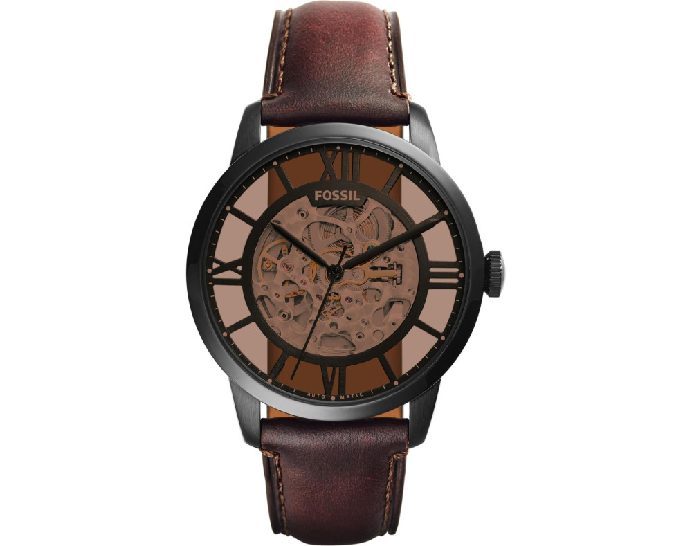 Orologio da polso Fossil Townsman ME3098 Analogico Uomo con movimento Meccanico, cassa in Acciaio inossidabile di diametro 44 mm, quadrante Marrone, vetro Minerale e cinturino in Pelle di colore Marrone.