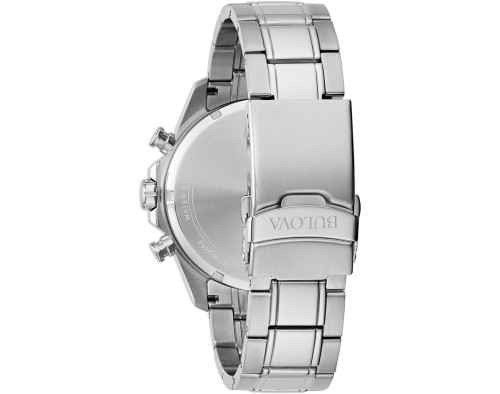 Orologio da polso Bulova 96B395 Cronografo Uomo con movimento Al quarzo, cassa in Acciaio inossidabile di diametro 43 mm, quadrante Arancione, vetro Minerale e cinturino in Acciaio inossidabile di colore Argento.