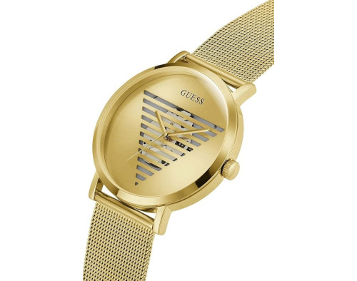 Orologio da polso Guess Idol GW0502G1 Analogico Uomo con movimento Al quarzo, cassa in Acciaio inossidabile di diametro 44 mm, quadrante Oro, vetro Minerale e cinturino in Maglia milanese di colore Oro.