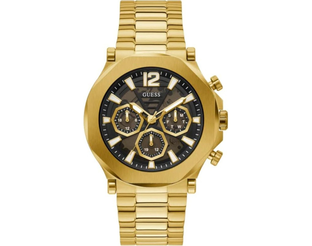Orologio da polso Guess Edge GW0539G2 Analogico Uomo con movimento Al quarzo, cassa in Acciaio inossidabile di diametro 46 mm, quadrante Nero, vetro Minerale e cinturino in Acciaio inossidabile di colore Oro.