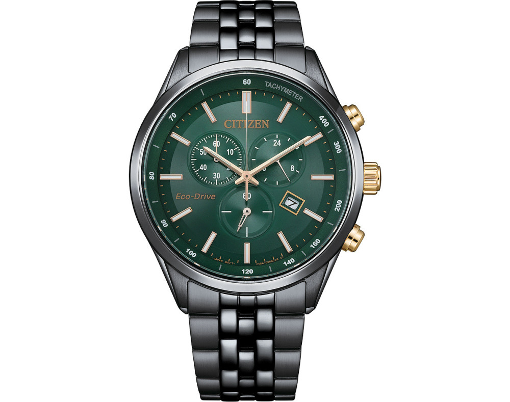 Orologio da polso Citizen Eco-Drive AT2576-50X Cronografo Uomo con movimento Al quarzo, cassa in Acciaio inossidabile di diametro 42 mm, quadrante Verde, vetro Minerale con trattamento Zaffiro e cinturino in Acciaio inossidabile di colore Nero.