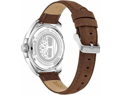 Kvarcas Vyras Rankinis laikrodis Timberland TDWGB2230602 su Nerūdijantis plienas dėklu, 44 mm skersmens, Mineralinis stiklas, Juoda ciferblatu ir Ruda Oda apyranke.