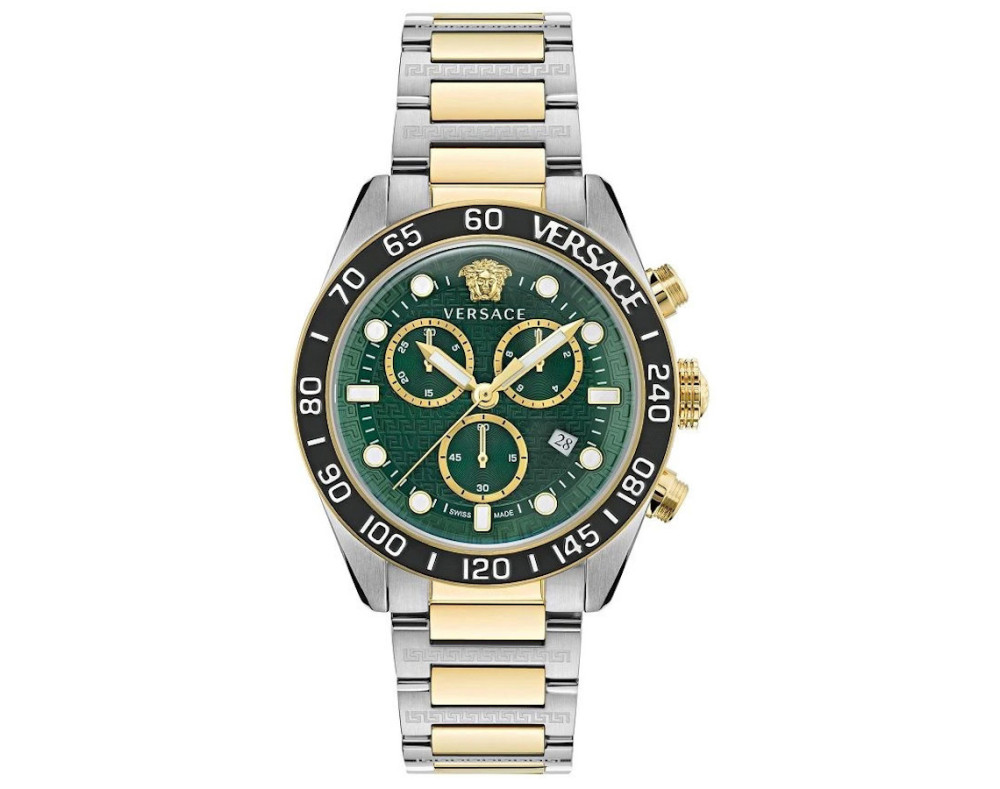 Kvarcas Vyras Rankinis laikrodis Versace VE6K00423 su Nerūdijantis plienas dėklu, 43 mm skersmens, Mineralas su safyru stiklas, Žalias ciferblatu ir Dviejų atspalvių Nerūdijantis plienas apyranke.