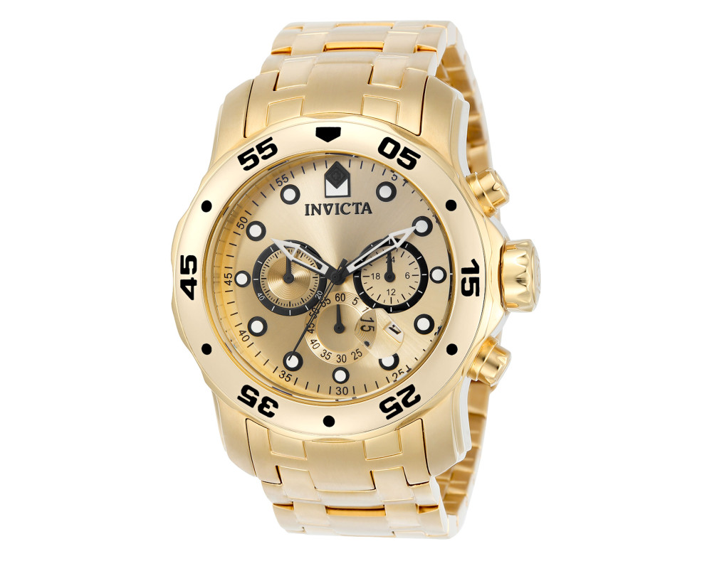 Kvarcas Vyras Rankinis laikrodis Invicta 0074 su Nerūdijantis plienas dėklu, 48 mm skersmens, Mineralinis stiklas, Auksas ciferblatu ir Auksas Nerūdijantis plienas apyranke.