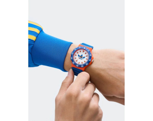 Kvarcas Unisex Rankinis laikrodis Adidas AOSY25513 su Derva dėklu, 40 mm skersmens, Mineralinis stiklas, Baltas ciferblatu ir Mėlyna Silikonas apyranke.