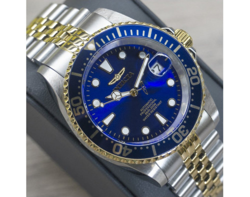 Mechaninis Vyras Rankinis laikrodis Invicta 30093 su Nerūdijantis plienas dėklu, 42 mm skersmens, Mineralinis stiklas, Mėlyna ciferblatu ir Dviejų atspalvių Nerūdijantis plienas apyranke.