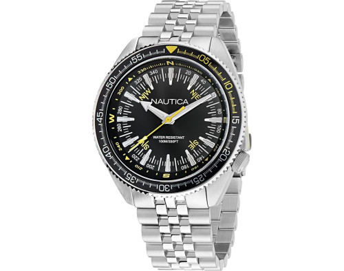 Kvarcas Vyras Rankinis laikrodis Nautica NAPNVF303 su Nerūdijantis plienas dėklu, 44 mm skersmens, Mineralinis stiklas, Juoda ciferblatu ir Sidabras Nerūdijantis plienas apyranke.