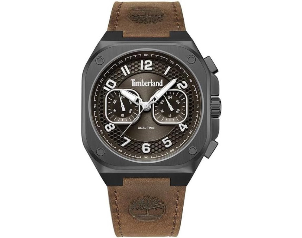 Kvarcs Cilvēks Rokas pulkstenis Timberland TDWGF0055001 ar Nerūsējošais tērauds korpusu, ar diametru 46 mm, Minerāls stikls, Brūns ciparnīcu un Brūns Āda siksnu.