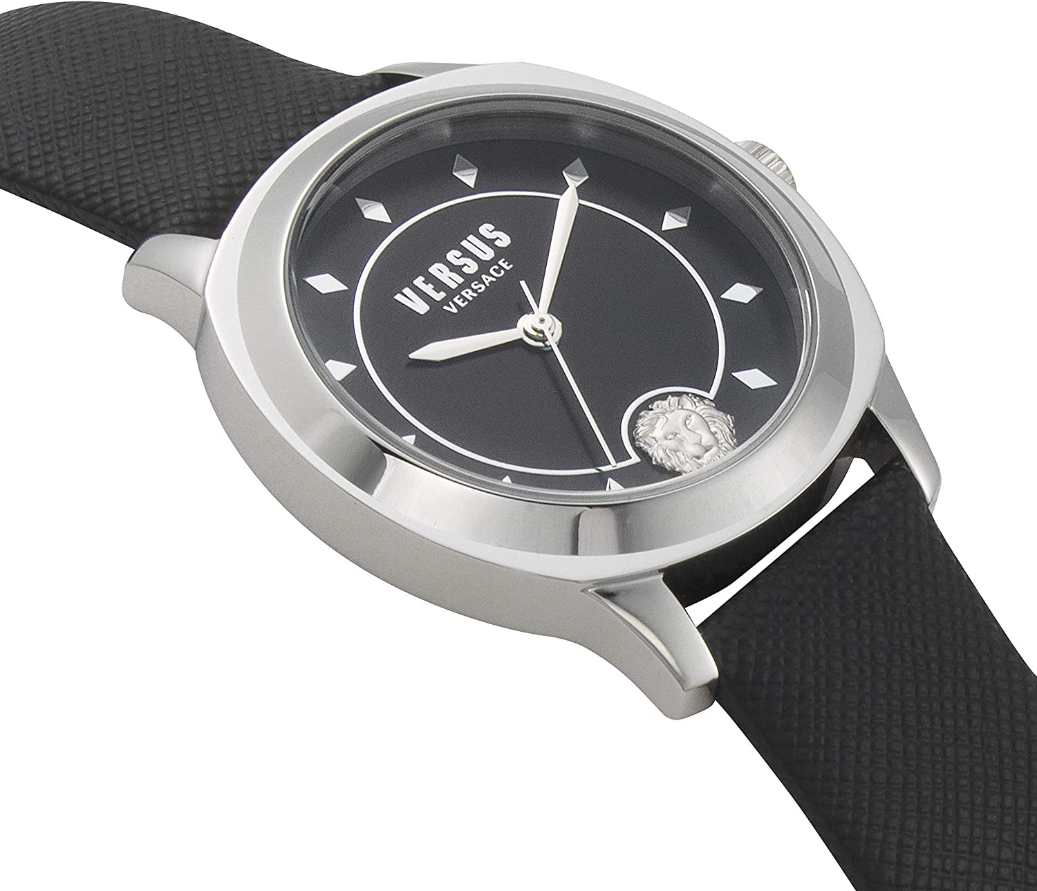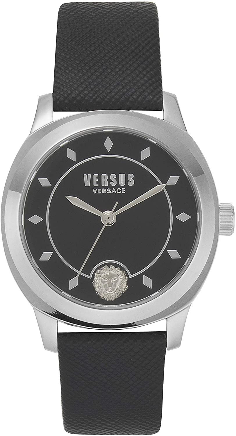 Kvarcs Sieviete Rokas pulkstenis Versus Versace VSPBU0118 ar Nerūsējošais tērauds korpusu, ar diametru 37 mm, Minerāls stikls, Melns ciparnīcu un Melns Āda siksnu.