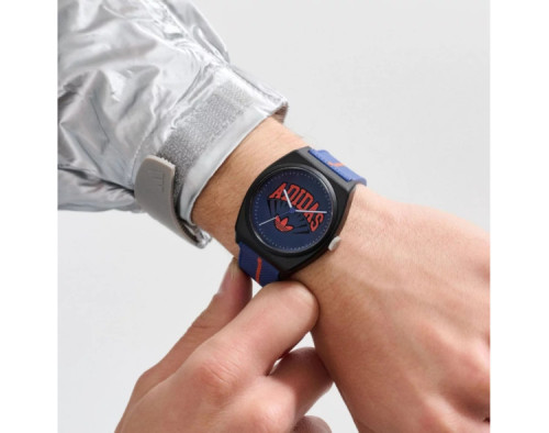 Kvarcs Unisex Rokas pulkstenis Adidas AOST25037 ar Plastmasa korpusu, ar diametru 38 mm, Akrils stikls, Zils ciparnīcu un Zils Sveķi siksnu.