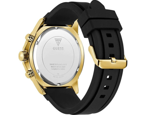 Kvarcs Cilvēks Rokas pulkstenis Guess GW0909G2 ar Nerūsējošais tērauds korpusu, ar diametru 48 mm, Minerāls stikls, Zelts ciparnīcu un Melns Silikona siksnu.