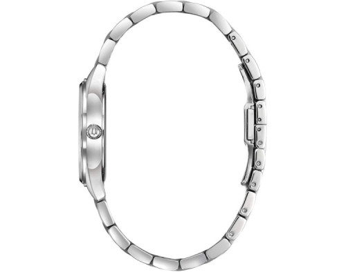 Kvarcs Sieviete Rokas pulkstenis Bulova 96P198 ar Nerūsējošais tērauds korpusu, ar diametru 32 mm, Minerāls ar safīru apstrādi stikls, Pērļu māte ciparnīcu un Sudrabs Nerūsējošais tērauds siksnu.