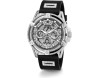 Kvarcs Cilvēks Rokas pulkstenis Guess GW0537G1 ar Nerūsējošais tērauds korpusu, ar diametru 48 mm, Minerāls stikls, Sudrabs ciparnīcu un Melns Silikona siksnu.