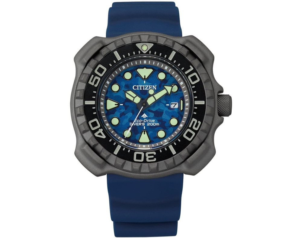 Kvarcs Cilvēks Rokas pulkstenis Citizen BN0227-09L ar Titāns korpusu, ar diametru 46 mm, Minerāls stikls, Zils ciparnīcu un Zils Silikona siksnu.