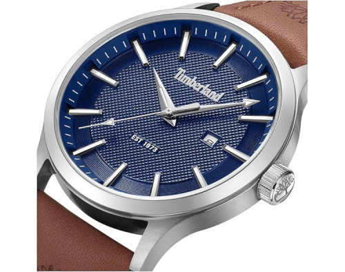 Кварц Мужчина Наручные часы Timberland TDWGB0041001, корпус Нержавеющая сталь, диаметр 45 mm, Минеральная стекло, Синий циферблат и Коричневый Кожа ремешок.