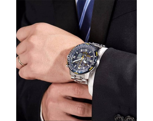 Кварц Мужчина Наручные часы Citizen JY8078-52L, корпус Нержавеющая сталь, диаметр 45 mm, Минерал с обработкой сапфиром стекло, Синий циферблат и Серебро Нержавеющая сталь ремешок.