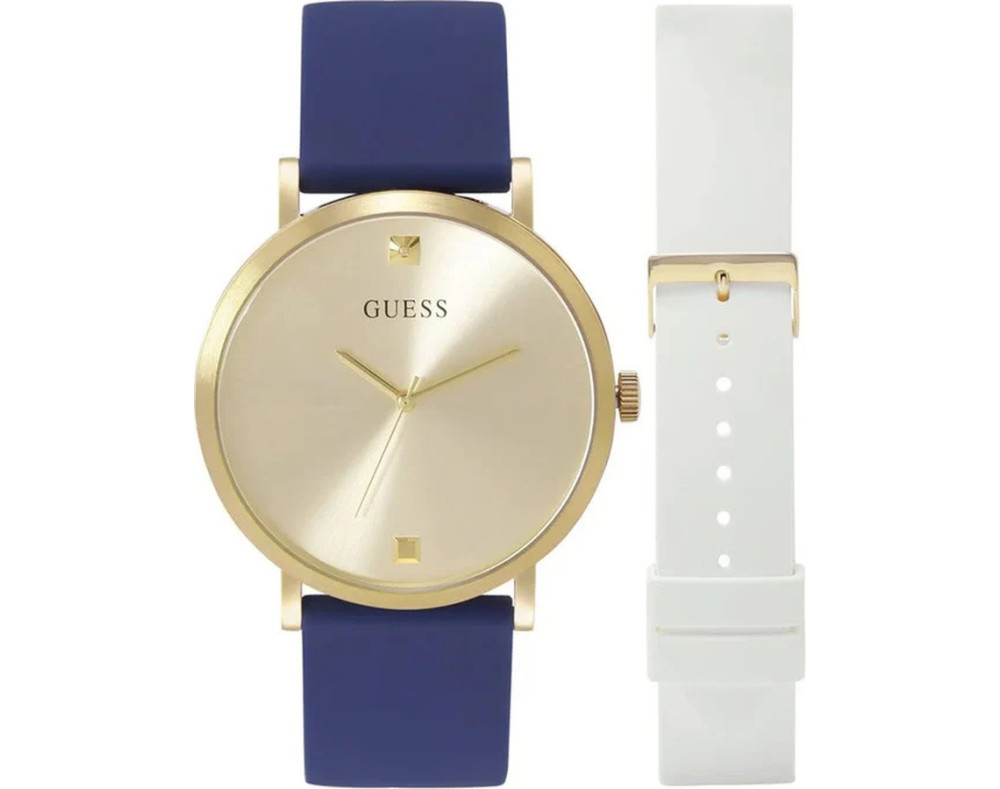 Кварц Мужчина Наручные часы Guess GW0350G1, корпус Нержавеющая сталь, диаметр 44 mm, Минеральная стекло, Золото циферблат и Синий Силикон ремешок.