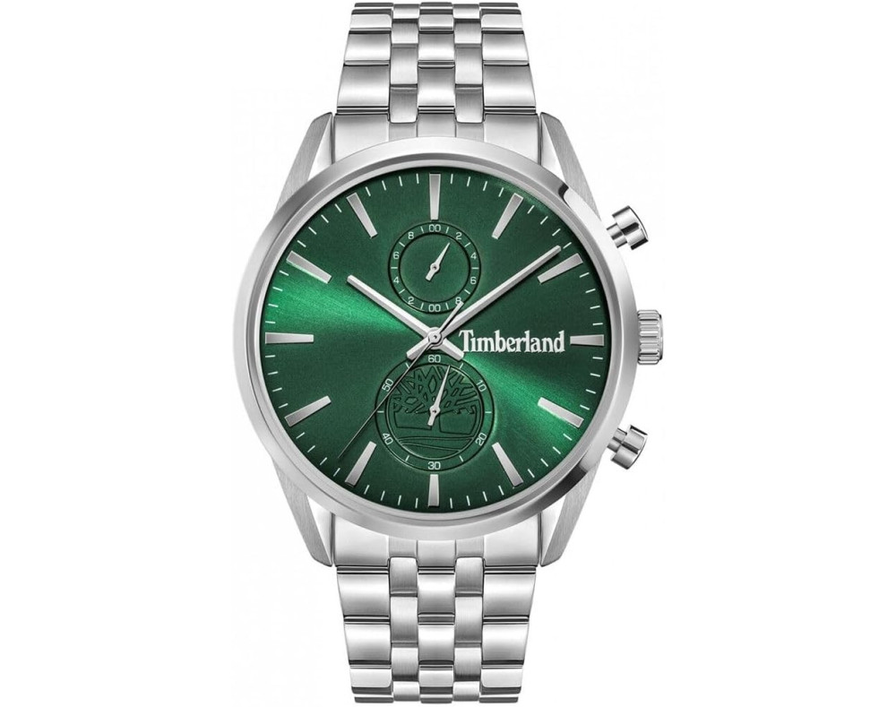Montre bracelet Timberland Sheepscot TDWGI0068703 pour Homme à Quartz, avec une boîtier de Acier inoxydable d’un diamètre de 43 mm, avec un cadran Vert et avec un bracelet de Acier inoxydable en couleur Argent.