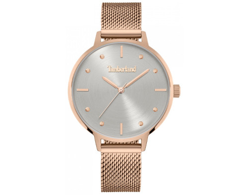 Montre bracelet Timberland Cranmore TDWLG0057101-SA pour Femme à Quartz, avec une boîtier de Acier inoxydable d’un diamètre de 36 mm, avec un cadran Argent et avec un bracelet de Maille milanaise en couleur Or rose.