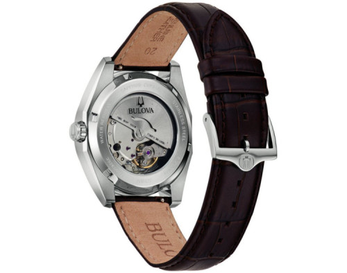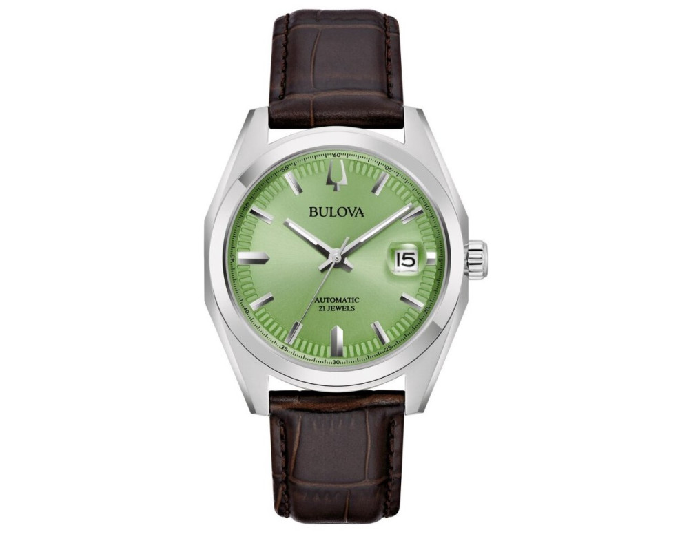 Montre bracelet Bulova 96B427 pour Homme à Mécanique, avec une boîtier de Acier inoxydable d’un diamètre de 39 mm, avec un cadran Vert et avec un bracelet de Cuir en couleur Marron.