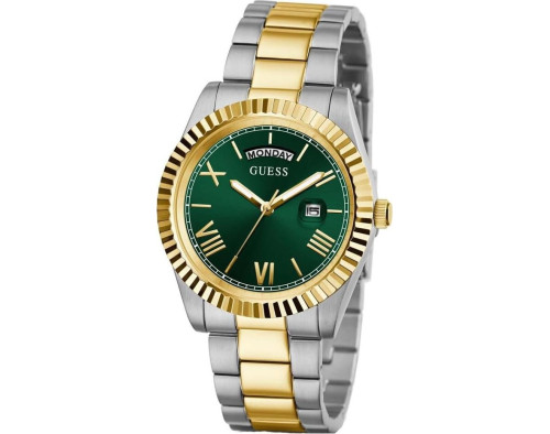 Montre bracelet Guess Connoisseur GW0265G8 pour Homme à Quartz, avec une boîtier de Acier inoxydable d’un diamètre de 42 mm, avec un cadran Vert et avec un bracelet de Acier inoxydable en couleur Deux tons.