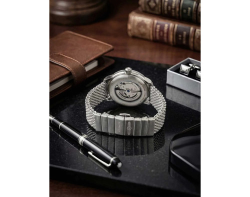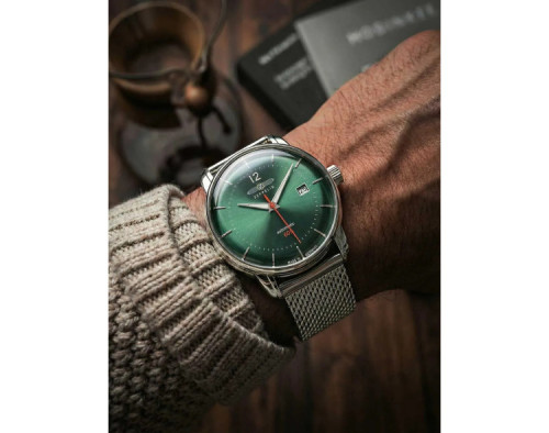 Armbanduhr Zeppelin LZ120 Bodensee 8160M-4 für Herren mit Mechanisch, Uhrengehäuse aus Edelstahl mit einem Durchmesser von 40 mm, Ziffernblatt Grün und Uhrenarmband aus Edelstahl in der Farbe Silber.