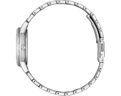 Armbanduhr Citizen Eco-Drive FE1240-57A für Damen mit Quarzwerk, Uhrengehäuse aus Edelstahl mit einem Durchmesser von 29 mm, Ziffernblatt Weiß und Uhrenarmband aus Edelstahl in der Farbe Silber.