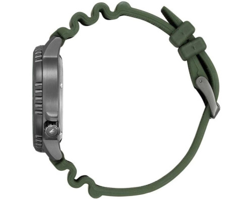 Armbanduhr Citizen Promaster Metropolitan Adventurer BN0157-11X für Herren mit Quarzwerk, Uhrengehäuse aus Edelstahl mit einem Durchmesser von 44 mm, Ziffernblatt Grün und Uhrenarmband aus Kautschuk in der Farbe Grün.