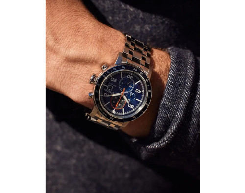 Armbanduhr Citizen Eco-Drive CA0850-59L für Herren mit Quarzwerk, Uhrengehäuse aus Edelstahl mit einem Durchmesser von 44 mm, Ziffernblatt Blau und Uhrenarmband aus Edelstahl in der Farbe Silber.